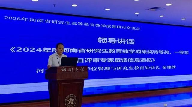 8月25日,由河南省教育厅主办,郑州大学研究生院、河南省研究生课程建设研究中心承办的“2025年河南省研究生教育教学成果研讨交流会”在郑州大学主校区举行。河南省教育厅学位管理与研究生教育处处长岳德胜,郑州大学党委常委、副校长、研究生院院长胡少伟,党委研究生工作部部长、研究生院副院长张世勋,研究生院培养办公室主任、河南省研究生课程建设研究中心主任何水出席会议。2018年国家级教学成果奖一等奖获得者江南大学纪志成教授,2022年国家级教学成果奖获得者河南大学王萍教授、河南农业大学叶优良教授、河南师范大学朱遵略教授,以及2024年度河南省研究生高等教育教学成果奖特等奖、一等奖主持人,2023年河南省高等教育教学改革研究与实践项目(研究生教育类)重大项目、重点项目主持人等150人参会。会议由河南省教育厅学位管理与研究生教育处二级调研员蔡弘主持。